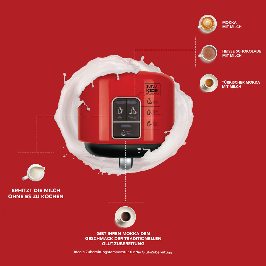 Hatir Mod Kaffeemaschine, Mokkamaschine, Kaffeevollautomat, Türkischer Mokka mit Milch, Zubereitung von türkischem Mokka, Milchschaum oder Kakao, Espresso maschine Automatische Abschaltfunktion