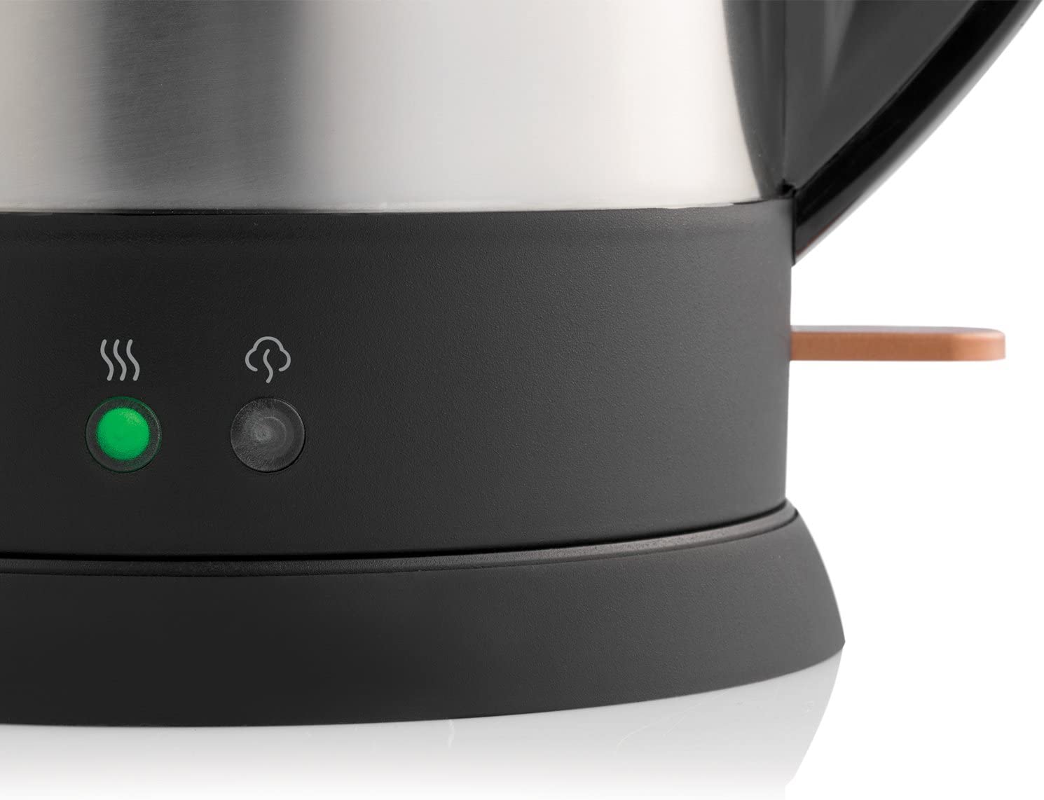 Das elegante Design in Silber wird durch den hochwertigen Edelstahl verdeckten Widerstand abgerundet, der nicht nur für eine schnelle Erhitzung des Wassers sorgt, sondern auch die Langlebigkeit des Geräts erhöht. Der Edelstahl-Teefilter garantiert zudem, dass Ihr Tee perfekt aromatisch wird – für ein unvergleichliches Geschmackserlebnis!