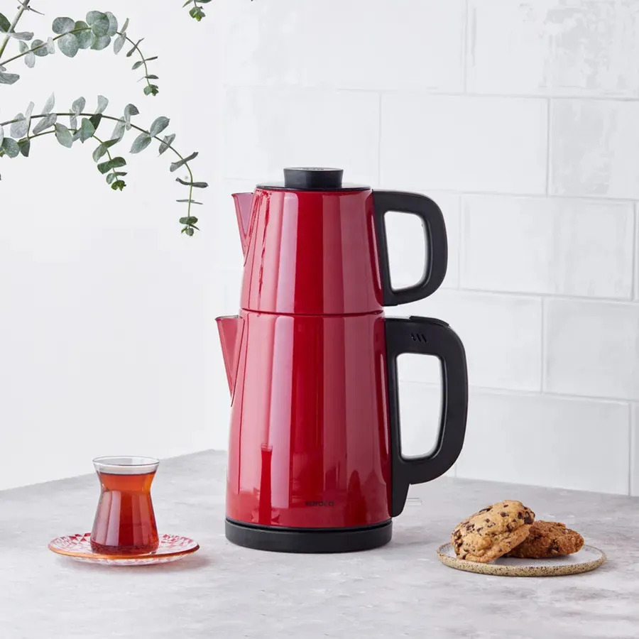 Karaca Tea Break Rot Edelstahl-Wasserkocher & Tee Zubereiter, rot