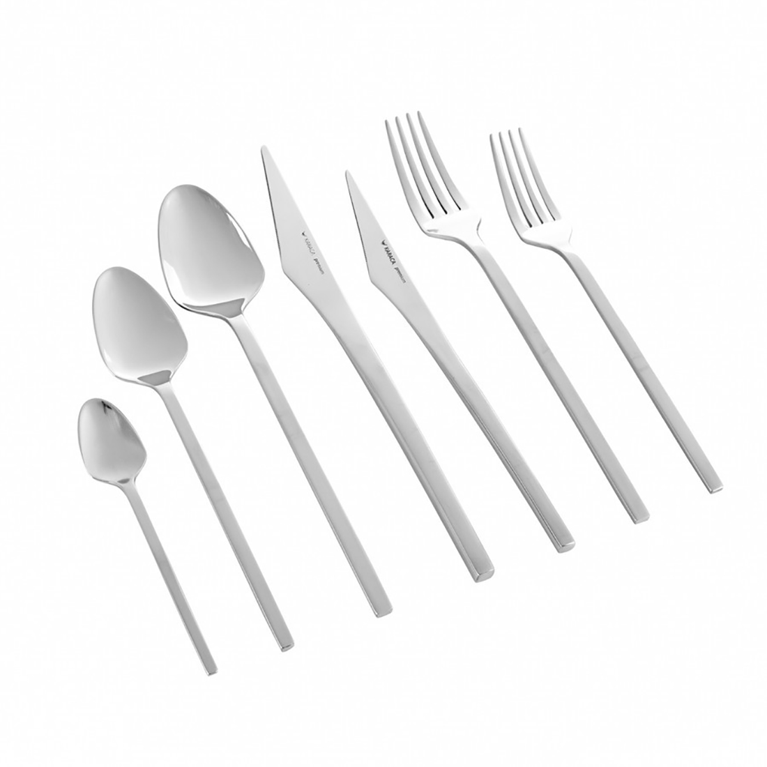 Mit seinem schlichten und modernen Design können Sie das Gabel-, Löffel- und Messerset für 12 Personen wählen, das sich jedem Stil von Geschirr, Frühstücks- oder Kuchenservice anpasst, sowohl für besondere Tische als auch für den täglichen Gebrauch. Er bietet mit seinem ergonomischen Design und dem Edelstahl, der lange seinen Glanz behält, eine ideale Nutzung. Der 84-teilige Inhalt umfasst 12 Esslöffel, Gabeln, Messer, Dessertlöffel, Dessertgabeln. Dank seiner speziellen Box können Sie es sicher aufbewahren.