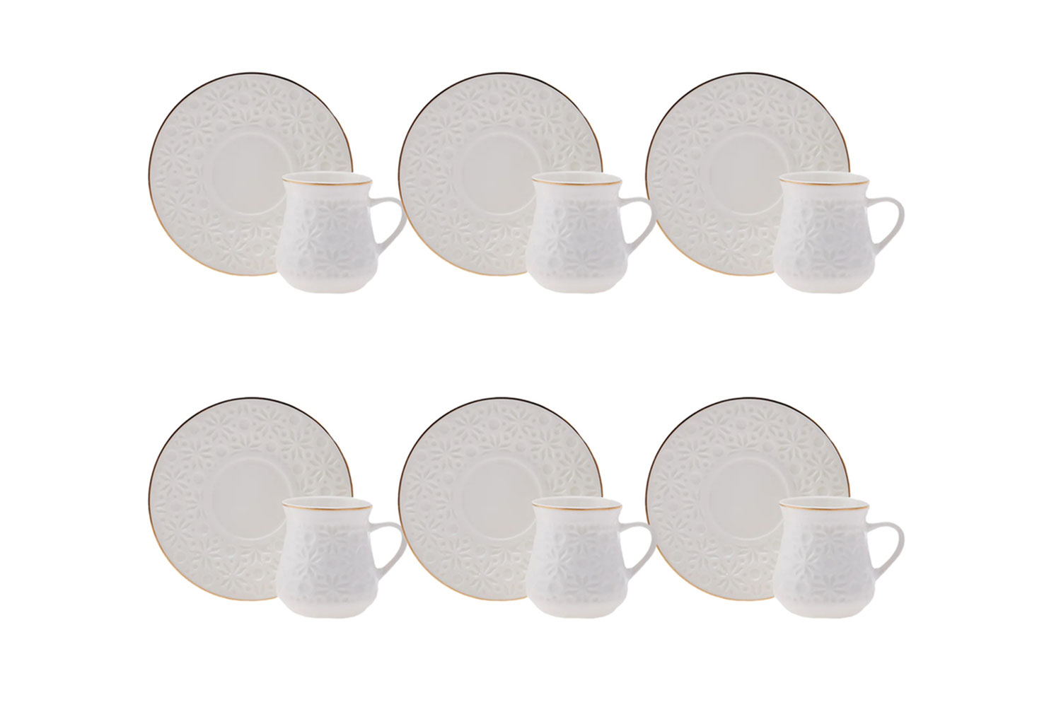 Karaca Nimo 6 Personen Kaffeetassenset in Weiss-Gold, Hochwertiges Porzellan Kaffeeservice für 6 Personen 12-teilig, Kaffeetasse mit Untertasse