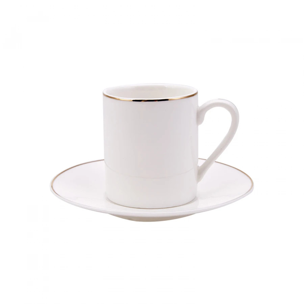Karaca Elda Espressotassen-Set für 6 Personen 12-teilig 80 ml Gold-Weiss, Kaffeetasse mit Untertasse, Espresso Kaffeegeschirr aus Porzellan