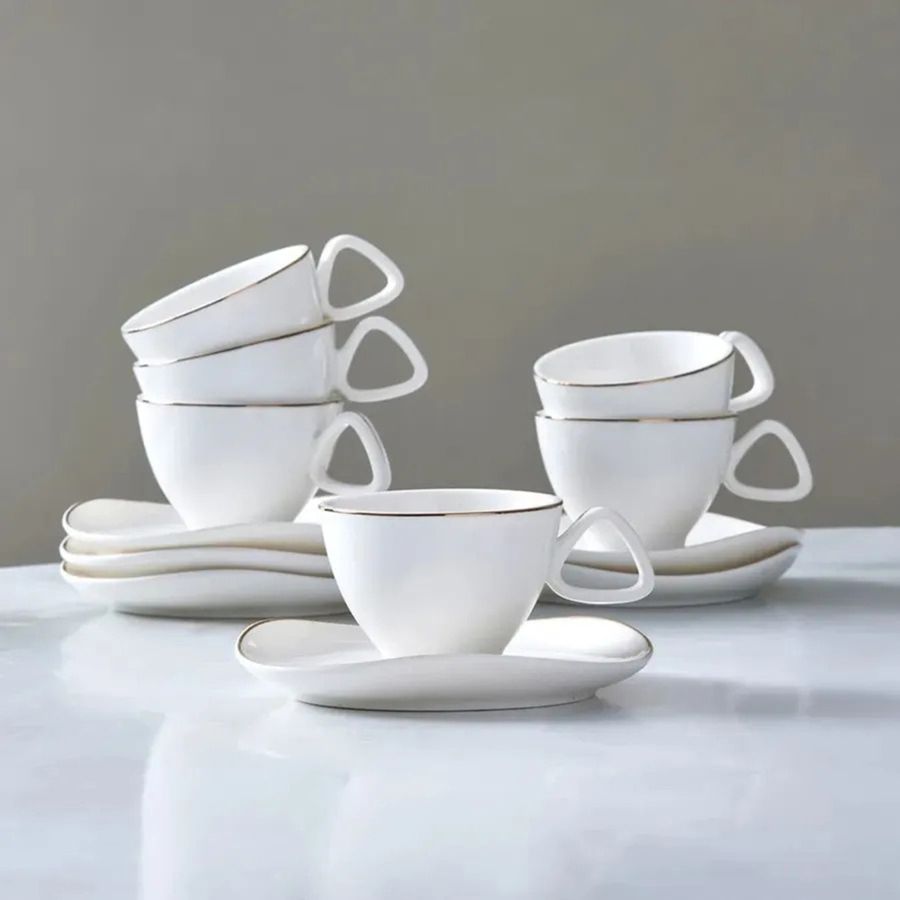 Karaca Middle 6 Personen Espressotassen Set 90 ml, Porzellantasse 6er Set für Gastro & Haushalt, 12 Teiliges Espressotassen-Set, Kaffee Becher