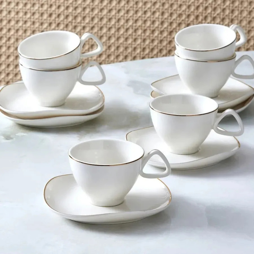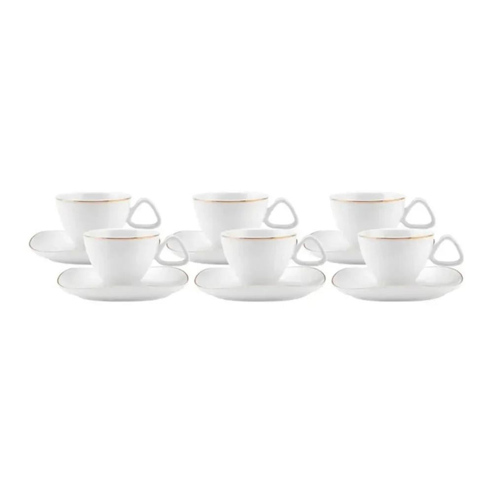 Karaca Middle 6 Personen Kaffeetassen Set 200 ml, Porzellantasse 6er Set für Gastro & Haushalt, 12 Teiliges Kaffeetassen-Set, Kaffee Becher