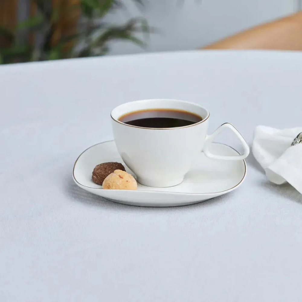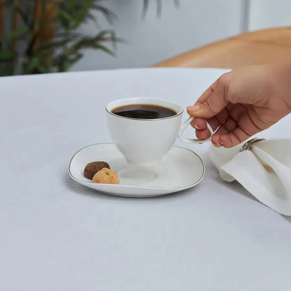 Karaca Middle 6 Personen Kaffeetassen Set 200 ml, das aus hochwertigem Porzellan in leuchtendem Weiß gefertigt ist. Es besticht durch sein elegantes und stilvolles Design, das sich durch seine klaren Linien und Formen auszeichnet. Das Geschirr ist perfekt für alle Kaffee- und Espresso-Trinker, die ein klares und schnörkelloses Design bevorzugen.