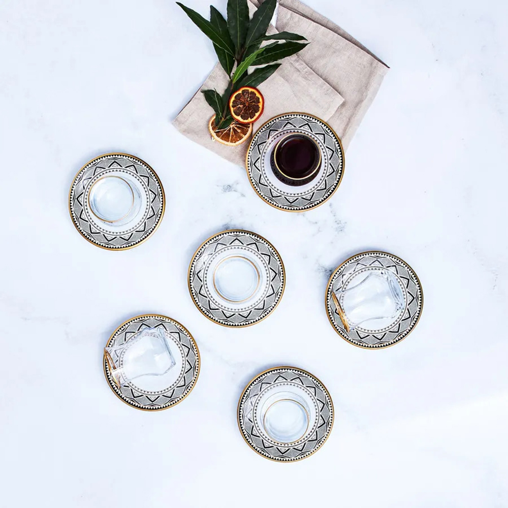 Karaca Globe New 12-teiliges türkisches Teeglas Set mit Gläsern und Tellern aus Glas