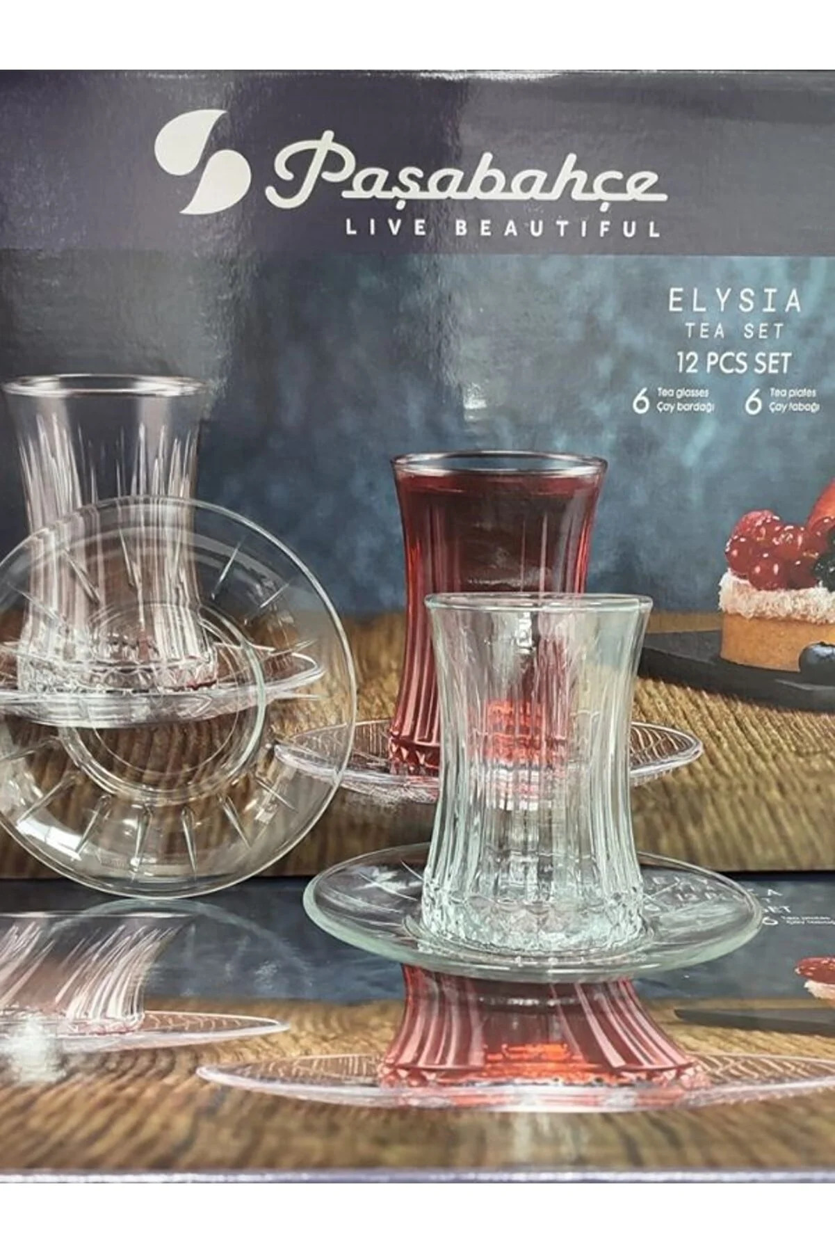 Pasabahce Elysia 950054 Teeglas Set 12 Teilig mit Untertassen