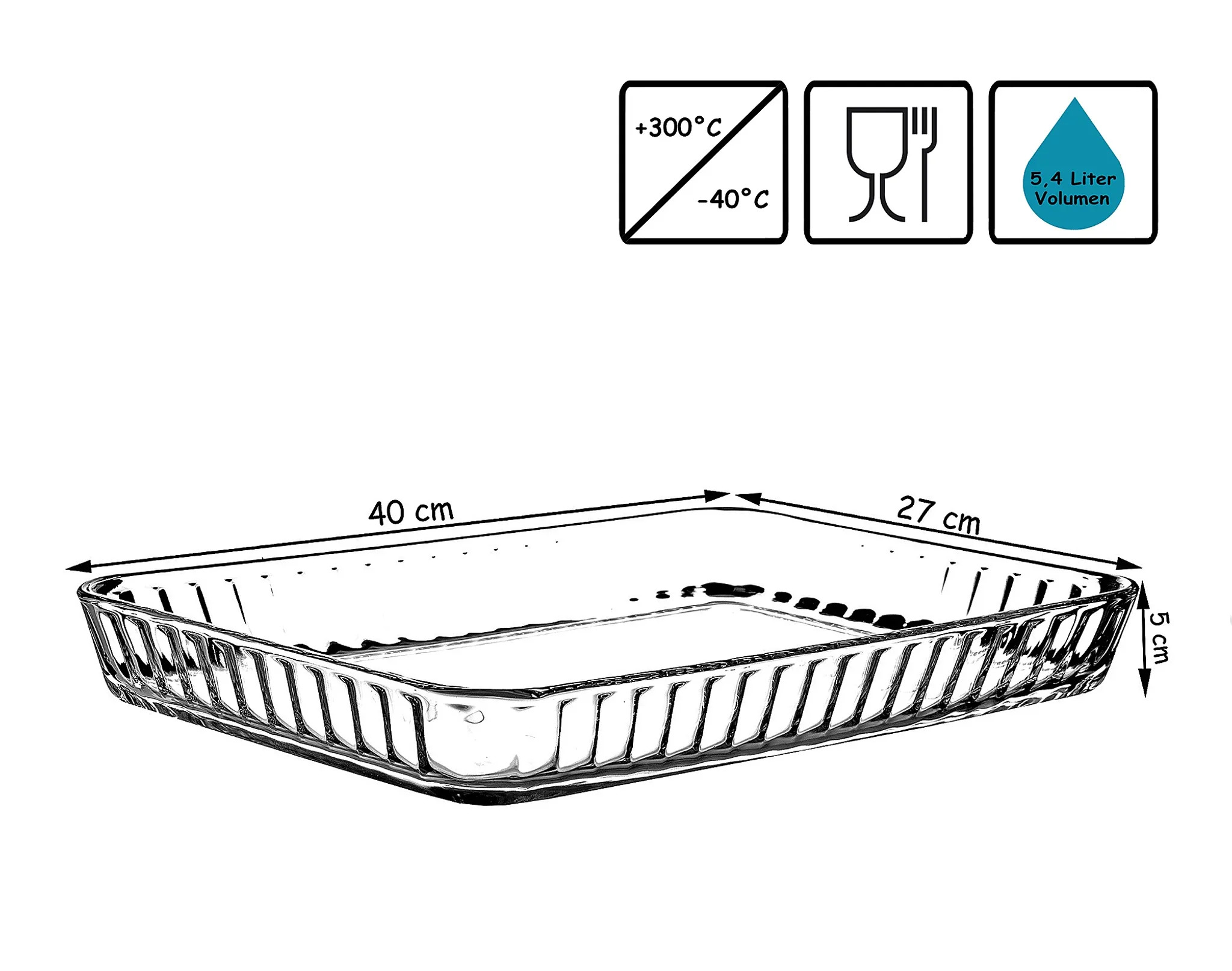 Diese Auflaufform ist aus hochwertigem, langlebigem Glas gefertigt und verfügt über eine Antihaftbeschichtung, die Ihnen ein einfaches Säubern ermöglicht. Sie ist mikrowellengeeignet und spülmaschinenfest, so dass Sie sie immer wieder verwenden können. Die rechteckige Form hat eine Kapazität von 3,8 Litern und ist hitzebeständig bis zu 300°C, sodass sie problemlos in jedem Ofen verwendet werden kann, egal ob Dampf- oder Elektroofen.