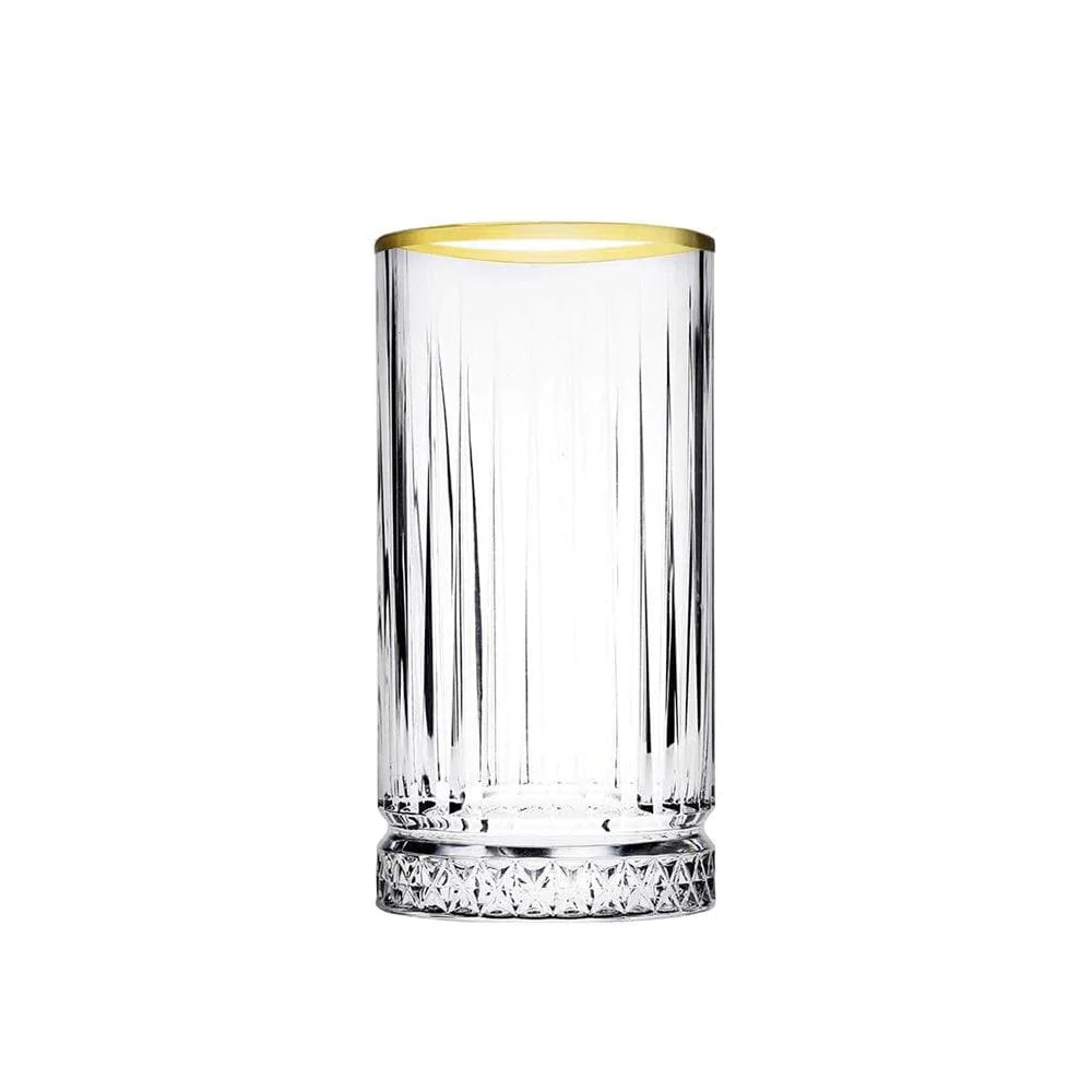 Pasabahce Elysia Golden Touch Long Drink Gläser 4-teiliges Set mit Goldrand; Trinkgläser 4er Set, Longdrink glas, Elegant Design, Cocktailgläser, edler Kristall Optik 280 ml