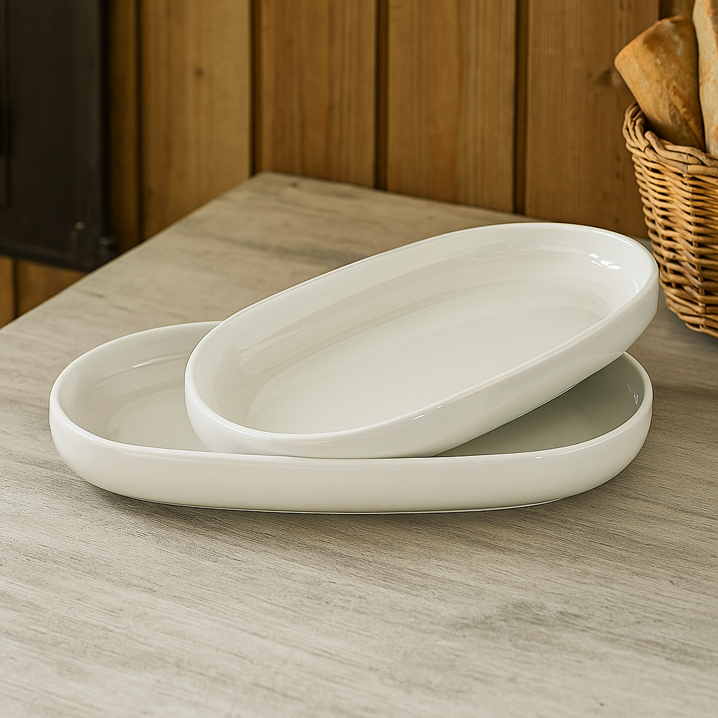 Das Set überzeugt durch hochwertige Materialien: Aus feinstem Porzellan gefertigt, sind die Teller robust und langlebig. Mit den Maßen von 26 x 13 x 3,5 cm bieten sie ausreichend Platz für eine Vielzahl von Speisen, ob Vorspeisen, Hauptgerichte, Beilagen oder Desserts. Zudem sind sie spülmaschinenfest, was Ihnen die Reinigung enorm erleichtert und Zeit spart.