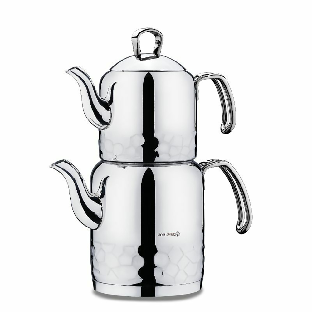 Korkmaz Erna A227-01 Teekanne Teekocher 3,4 Liter Induktion, Hochwertiges türkisches Teekannen-Set, Caydanlik Edelstahl Silber