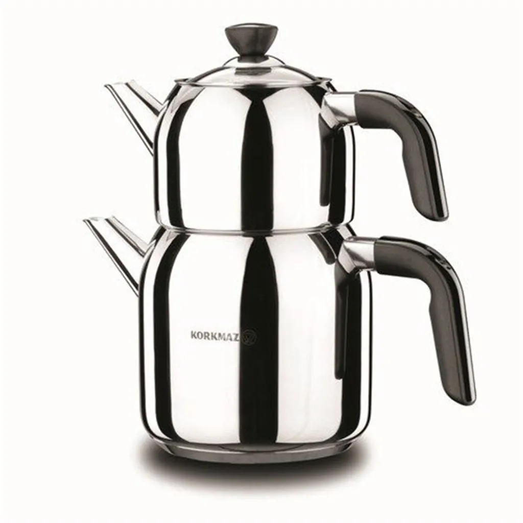 Korkmaz Kappa Maga A079-01 Teekocher 4,3 Liter Induktion, Hochwertiges türkisches Teekannen-Set, Caydanlik Edelstahl Silber