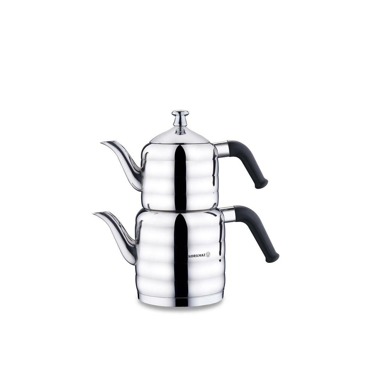 Korkmaz Mina Maxi A036 Teekanne Teekocher 3.1 Liter Induktion, Hochwertiges türkisches Teekannen-Set, Caydanlik Edelstahl silber
