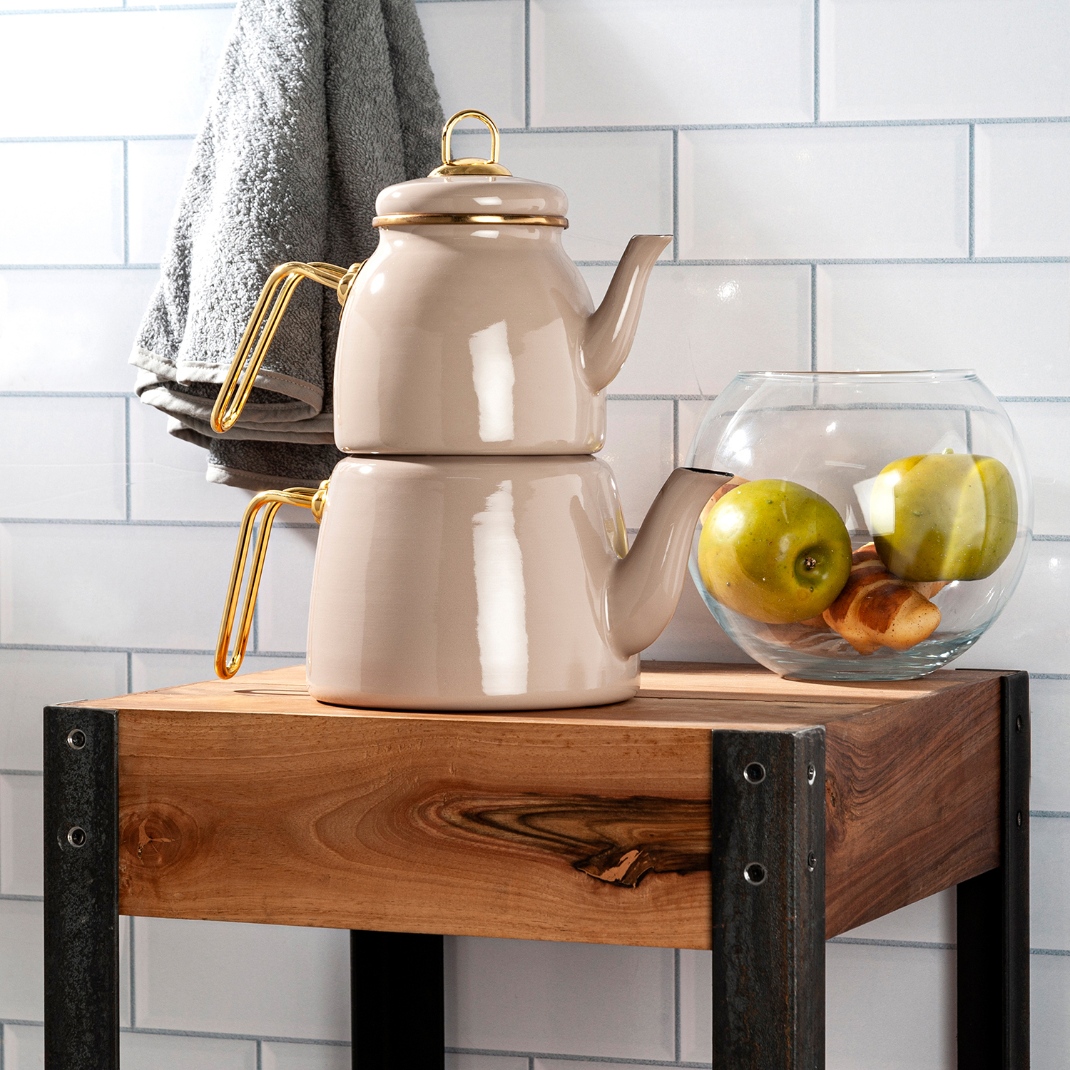 Robin Toprak Emaille Teekannen Set 3 Liter, Taupe